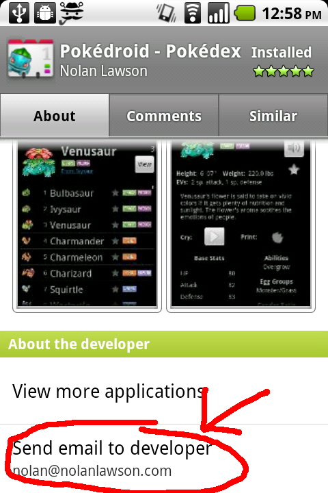 The reason that poor schmucks like Arron and me get inundated with these emails is due to the interface of the Android Market itself. When an app fails to install, the user will be on this page: