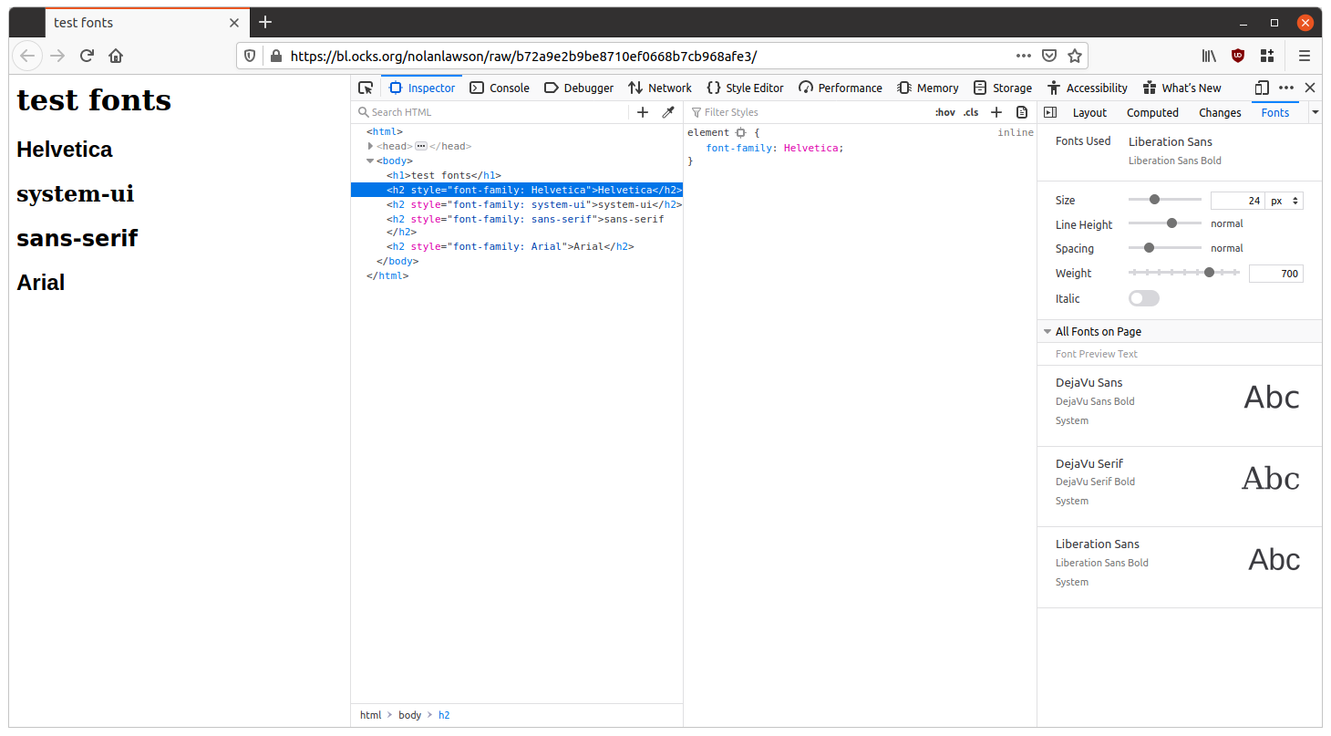 On Linux of course we have Chrome and Firefox, and those run mostly the same as they do on a Mac, so they fit the bill just fine. For WebKit we even have GNOME Web (aka Epiphany Browser), but I only consider it “okay” as a stand-in for Safari. It doesn’t support some of the Safari-specific APIs (e.g. backdrop filter, Apple Pay, etc.), and it’s terribly slow, but it’s good for a quick gut-check to see if some bit of code will run well on Safari or not.